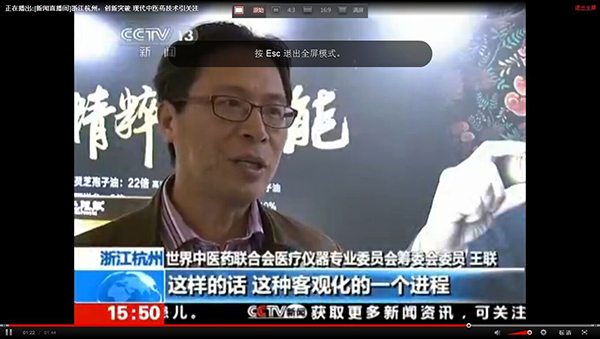 2015全國藥店年度峰會上我公司王總接受中央電視臺采訪,就目前中醫診療設備及中草藥現代化進程發表自己的見解。