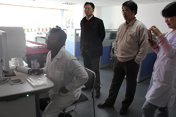 公司領導及于教授與留學生進行交流并指導學生進行實際操作